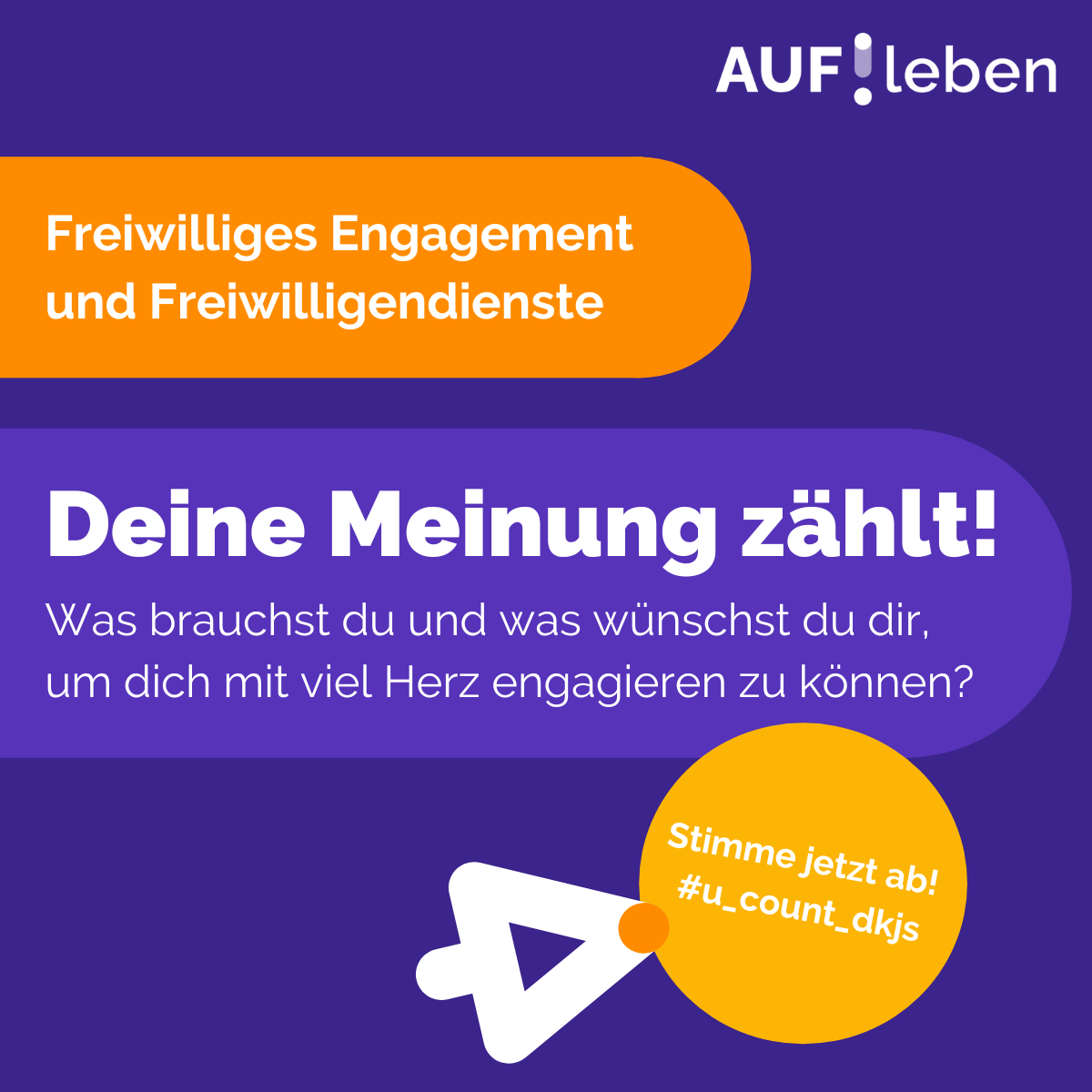 Die Deutsche Kinder- und Jugendstiftung unterstützt das Engagement und den Einsatz junger Menschen: Was braucht ihr, damit ihr euch gut engagieren könnt? Für welche Themen möchtet ihr euch einsetzen? Wie viel Zeit habt ihr dafür? Macht mit bei der Jugendbefragung u_count und sagt eure Meinung.